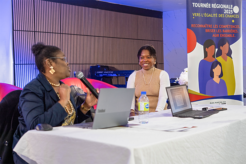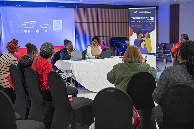 Notre escale à Sherbrooke a été une étape particulièrement enrichissante de notre tournée régionale pour l’égalité des chances. La journée a été marquée par de nombreux échanges, dialogues et partages d’expériences, ainsi qu’une réflexion collective autour du projet « Contrer les effets systémiques de la non reconnaissance des diplômes étrangers sur les femmes immigrantes ».